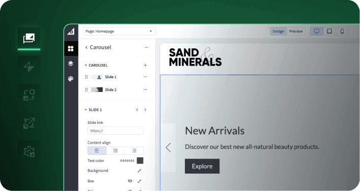 Create brand and shopping experience differentiation with unmatched freedom to use our hosted low/no code design suite, your own CMS or DXP in headless design, or both in a Multi-Storefront configuration.