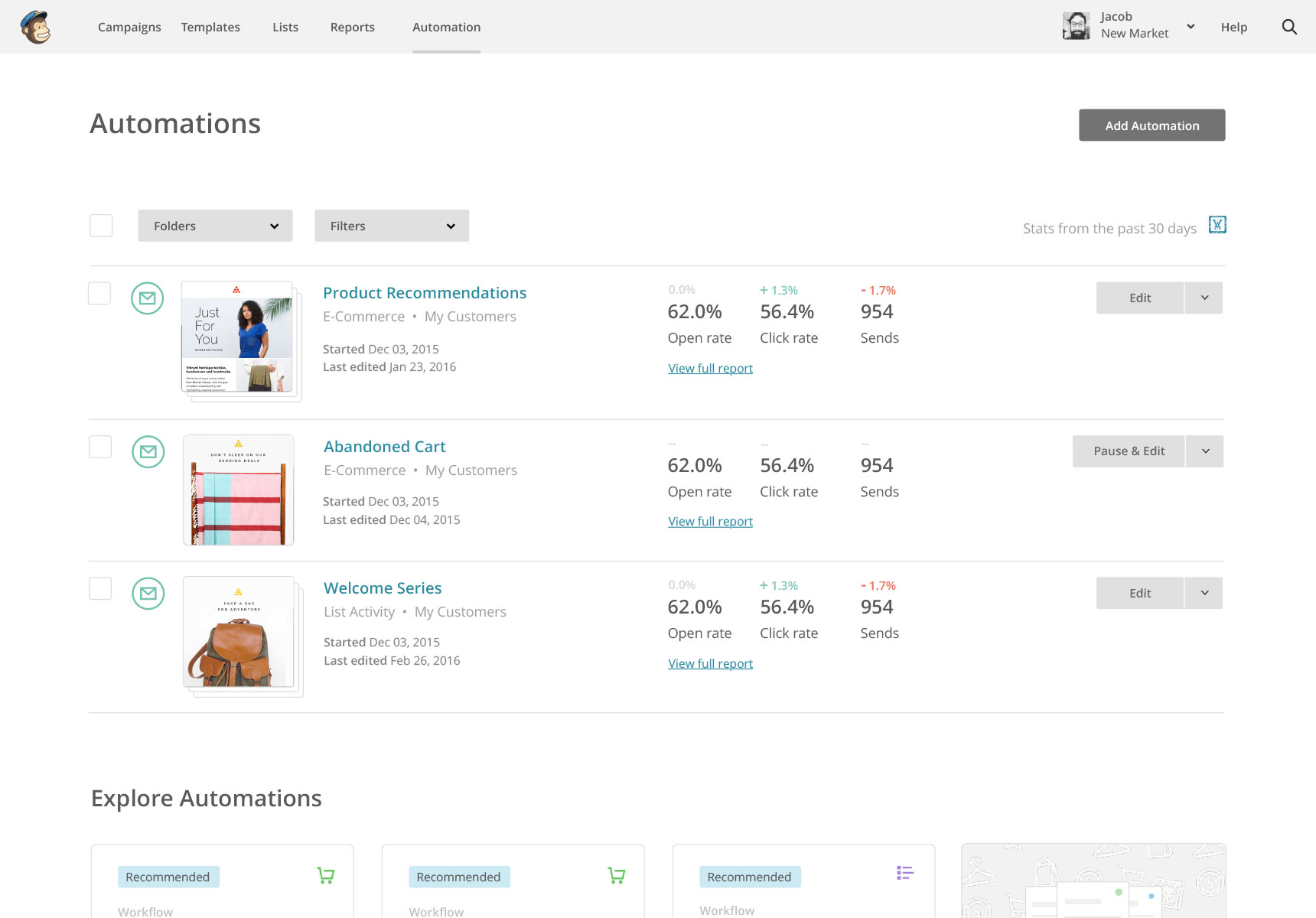 Super App for email marketing, they changed there paltform and updated with more options like recommendation, easy to use, but you have to learn also and navigate all options...am happy to use Mailshimp, mobile freindly and professional templates...thank you