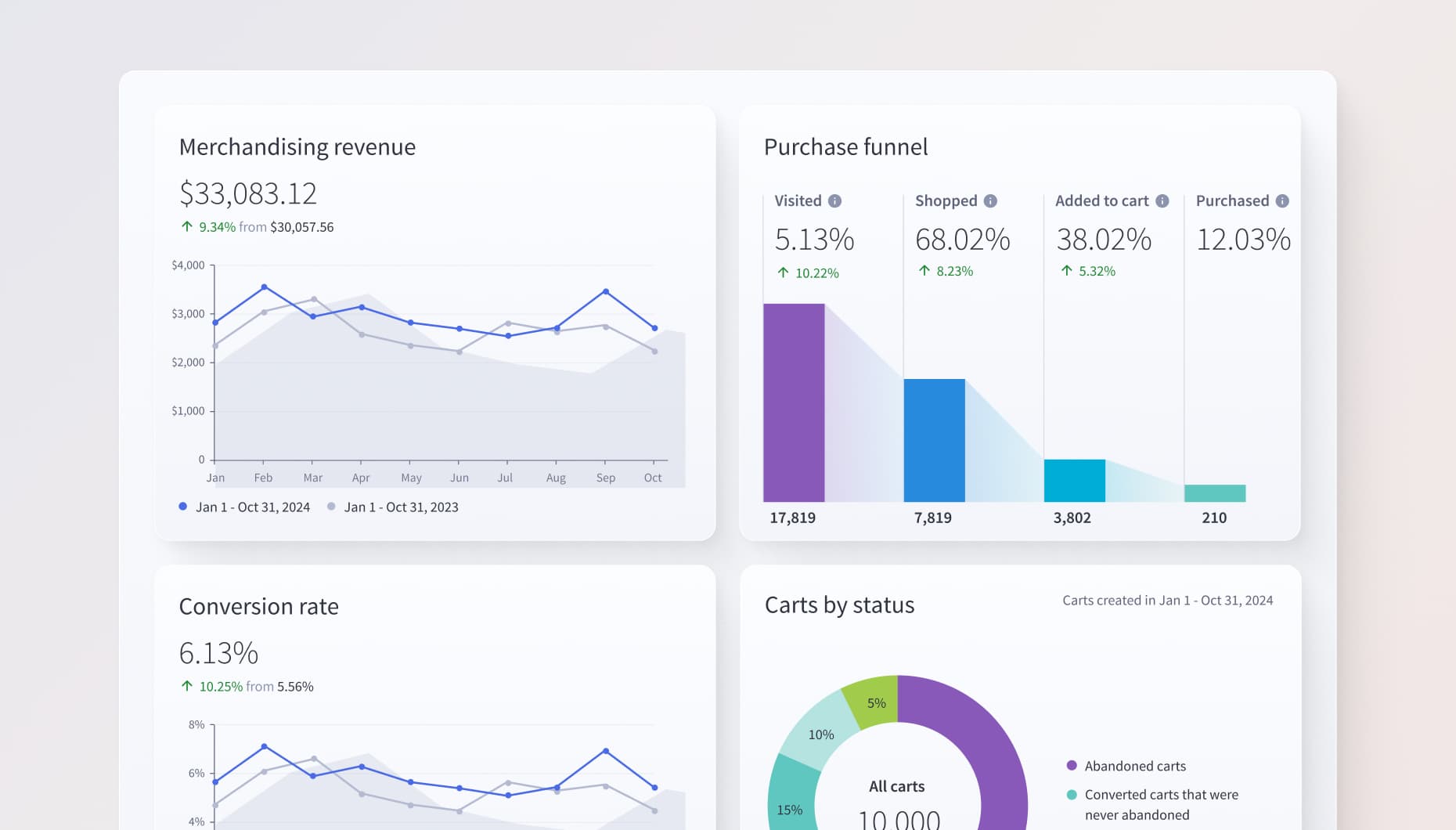 With powerful, built-in analytics tools with every plan, you can track your business and make adjustments to accelerate your growth. In addition, our growing suite of AI tools can speed up your day-to-day tasks and reduce the effort of running your business.