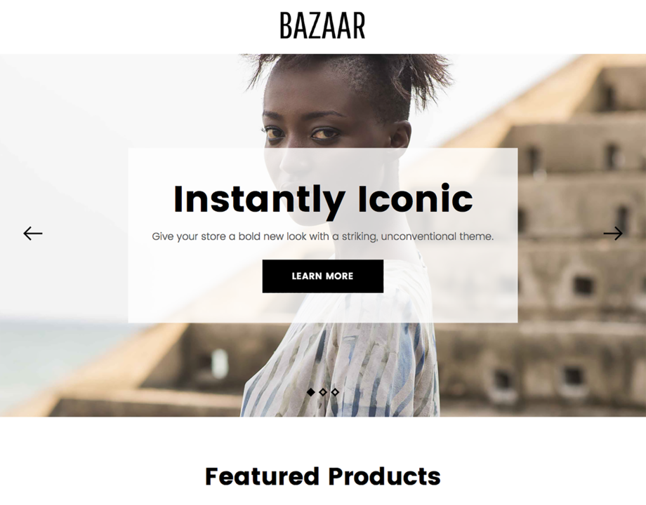Bazaar is a fresh and innovative theme built to convert. Its bold hero area and category grid combine to create a memorable first impression, while intuitive site navigation and product configuration deliver a purchasing experience that is effectively frictionless. Whether you’re selling clothing, jewelry, or artwork, Bazaar is the perfect theme for your one-of-a-kind brand.