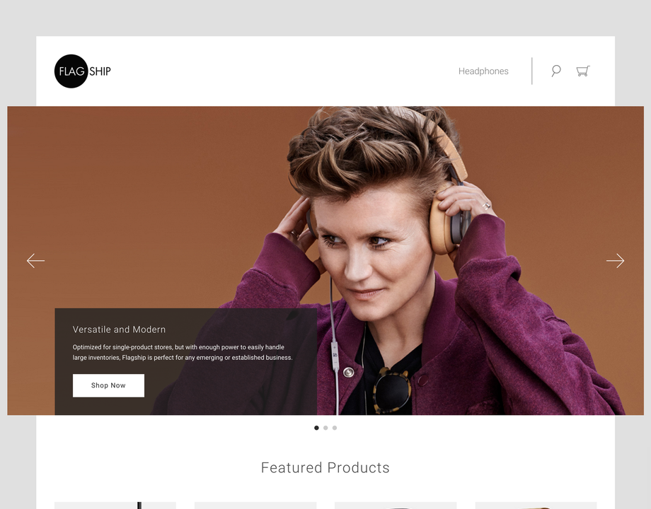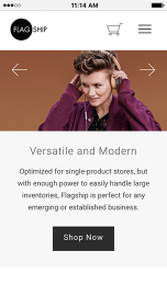 Flagship is a flexible theme that commands customers' attention. Optimized for single-product stores, with enough power under the hood to easily handle larger inventories, Flagship's eye-catching design, four diverse presets, and natural scalability are perfect for any emerging or established business.