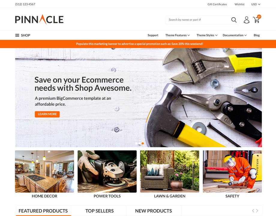 Pinnacle is a flexible and feature-rich theme designed to sell more. It's classic left navigation is perfect for stores with multiple products and categories, and it’s highly customizable theme editor lets you tailor your store to perfection. Powerful enough to handle any size of inventory, Pinnacle is ideal for startups and enterprise stores alike.