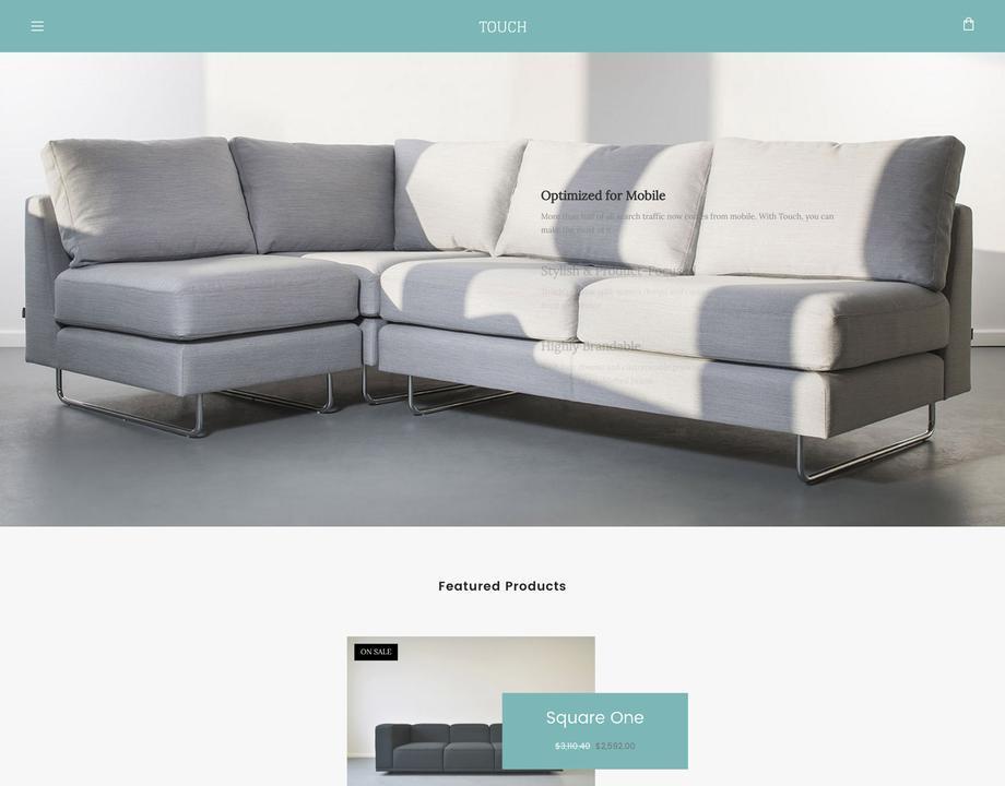 Touch is a versatile theme built with mobile shoppers in mind. Its split-screen design and customizable homepage grid put your products front and center, while large images and horizontal swiping are perfectly suited to handheld devices. Designed in collaboration with New York fashion icon LaQuan Smith, Touch is as stylish as it is scalable.